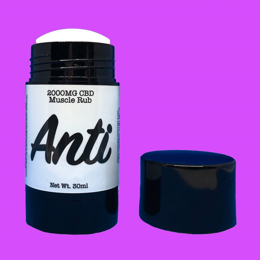 The Anti 2000MG CBD Muscle Rub is great to keep in your gym bag or at home by the bedside. You’re getting 2000MG of CBD in an easy-to-apply twist stick. Twist stick up and spread anywhere you have pain. Keep in a cool place.